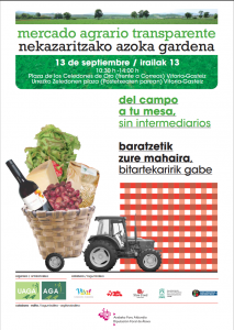 Por lo demás, habrá venta de productos directos de las explotaciones agroganaderas alavesas (verduras de temporada, patata, legumbres, quesos, miel, vino, txakoli, repostería casera, pastel vasco, aceite, variedades de panes, mermeladas…).